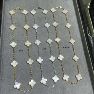 Clover necklace white fritillaria v gold material