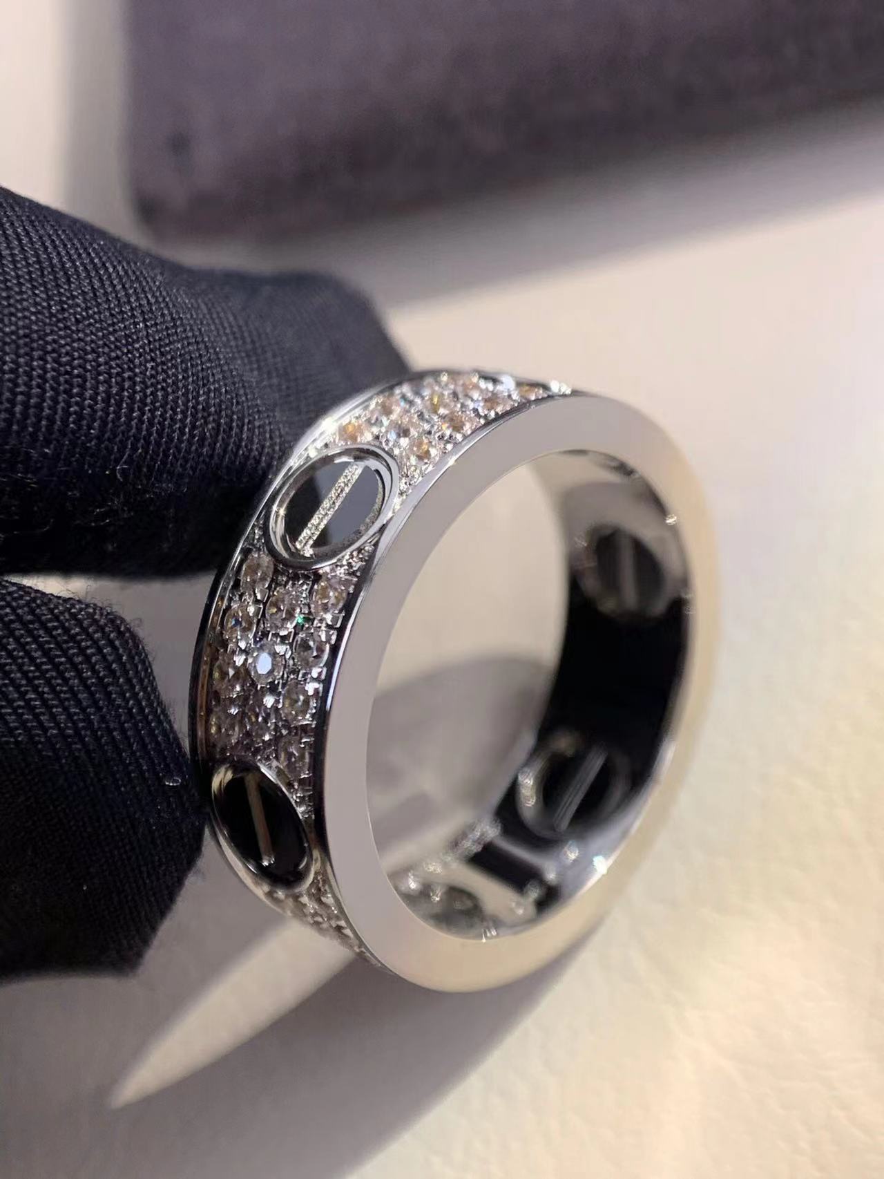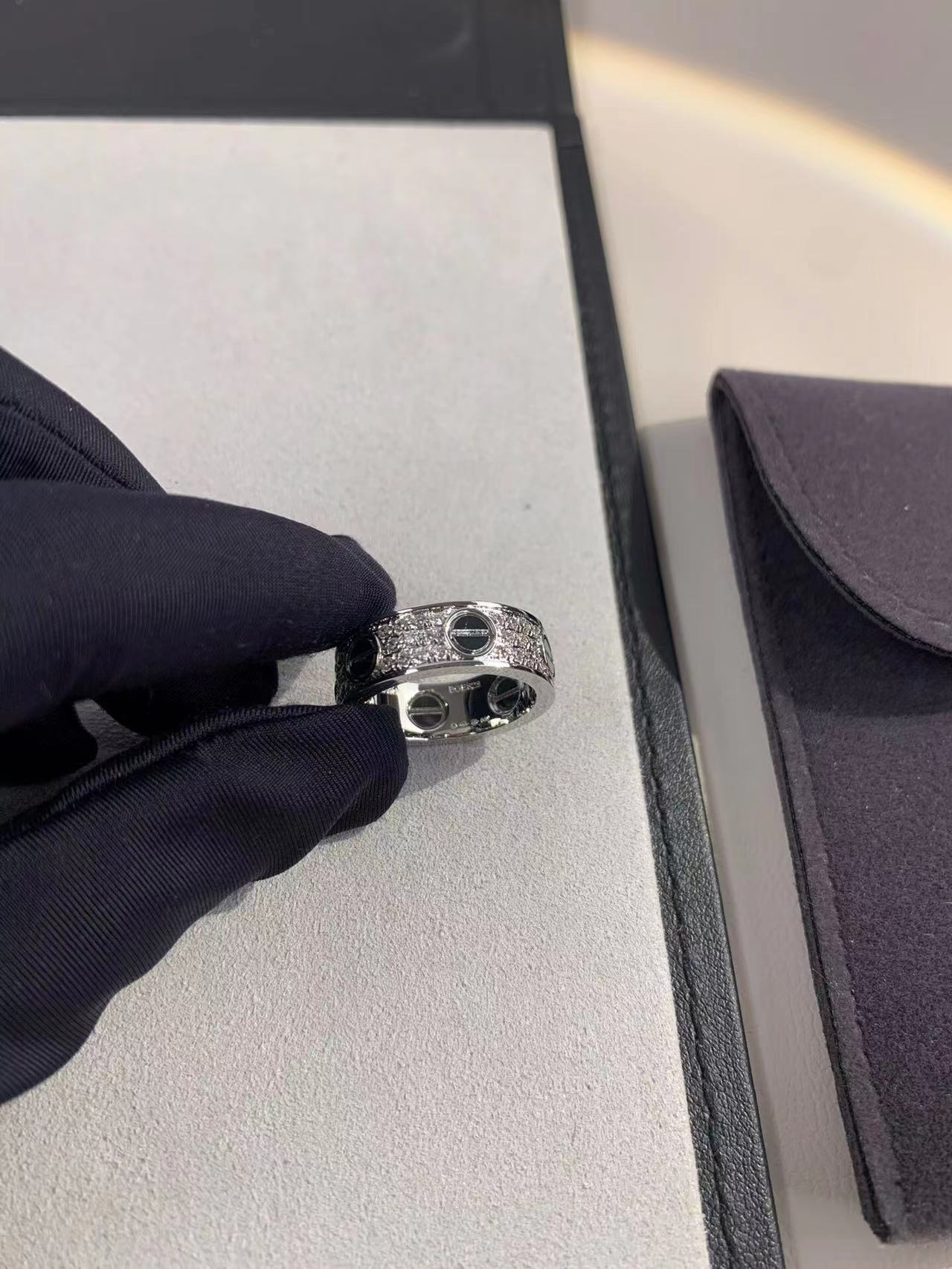4mm smooth tricolor V gold full diamond ring