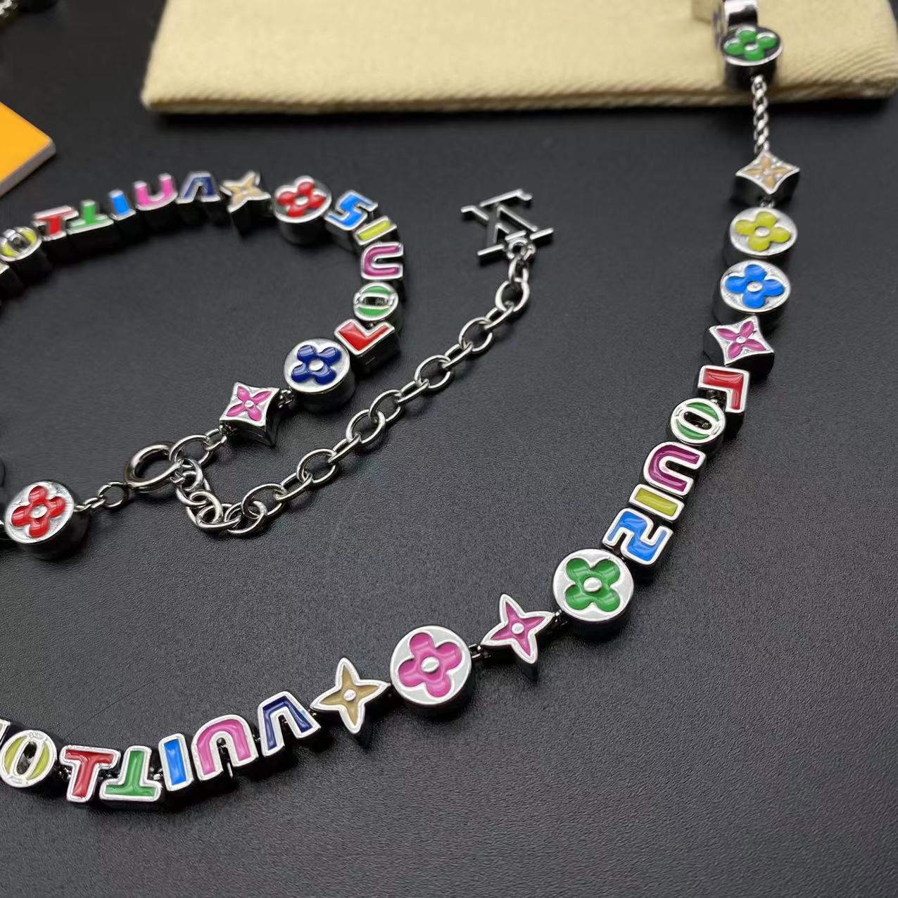 Pearl blue logo bracelet necklace
