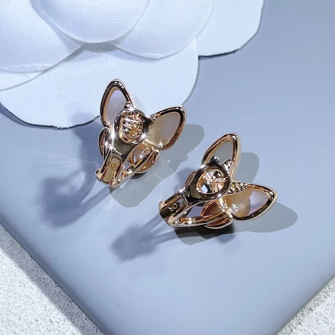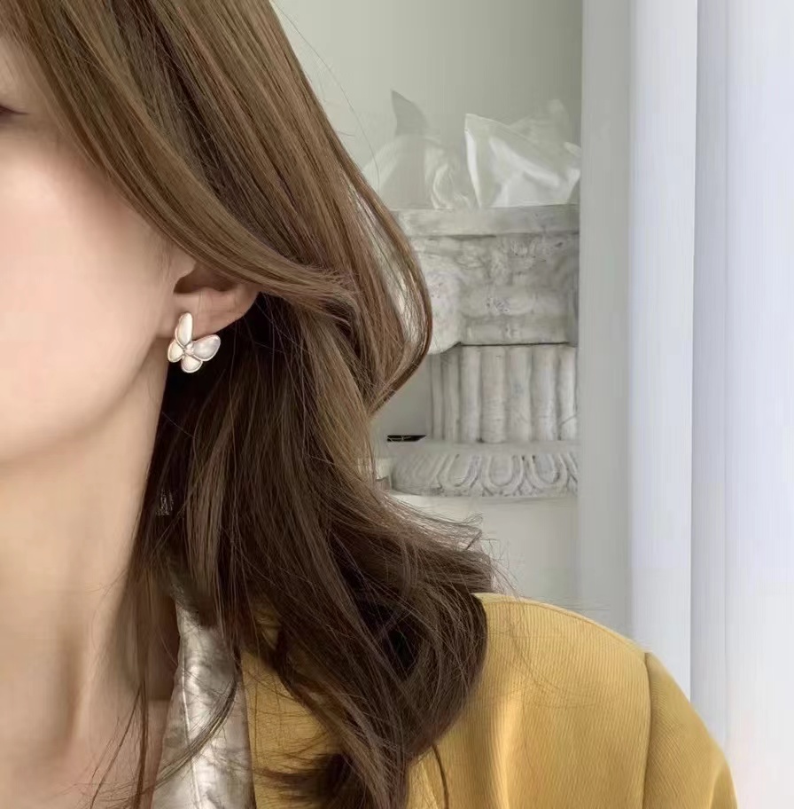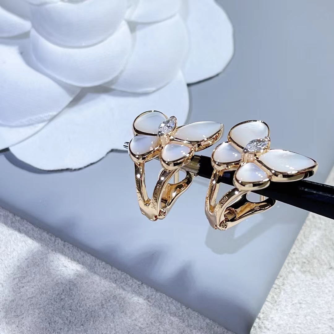 Four-leaved grass earrings, butterfly inlaid wi...