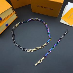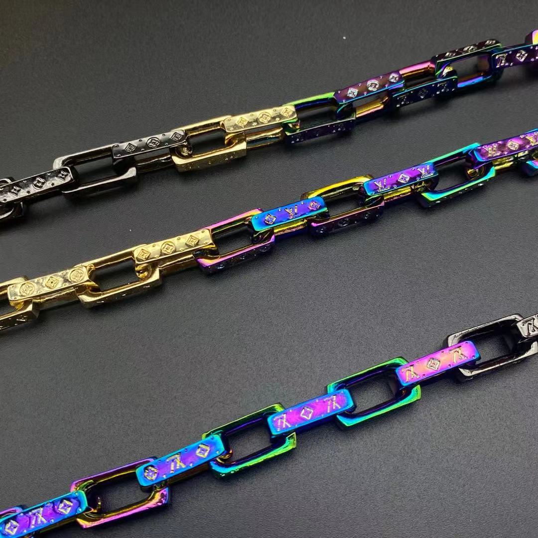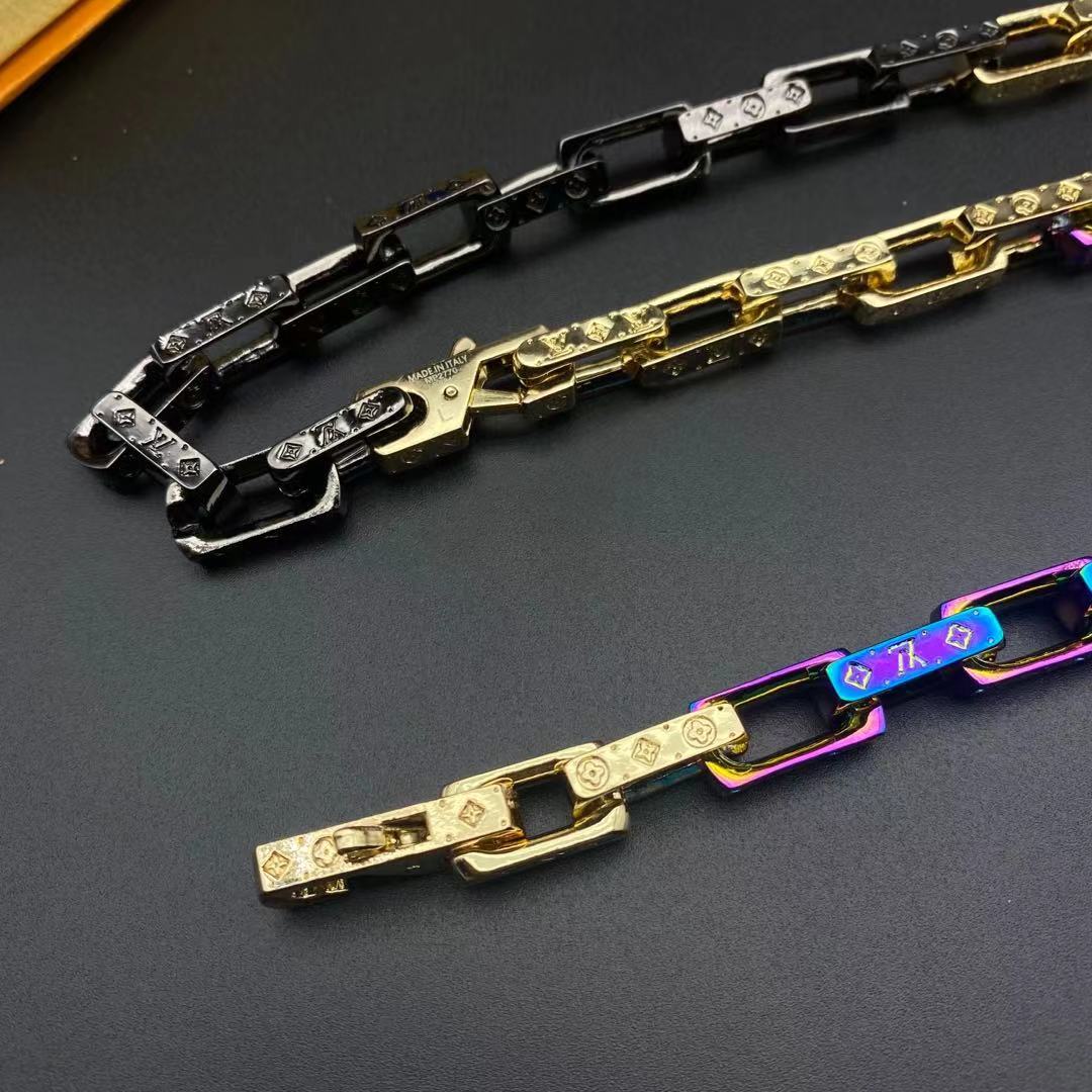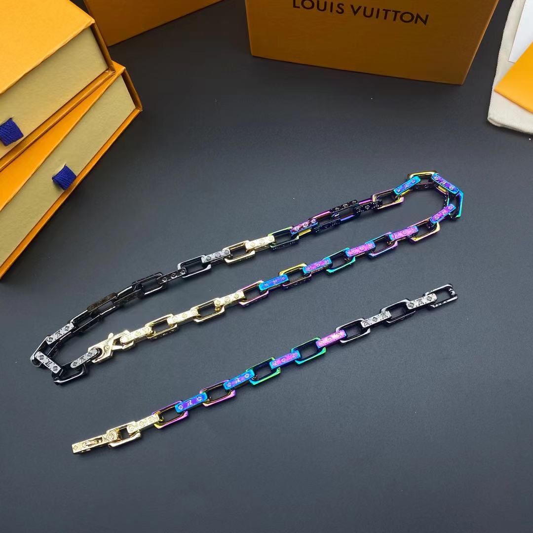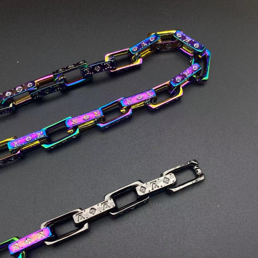 LV半黑半炫彩竹节手链项链合集
