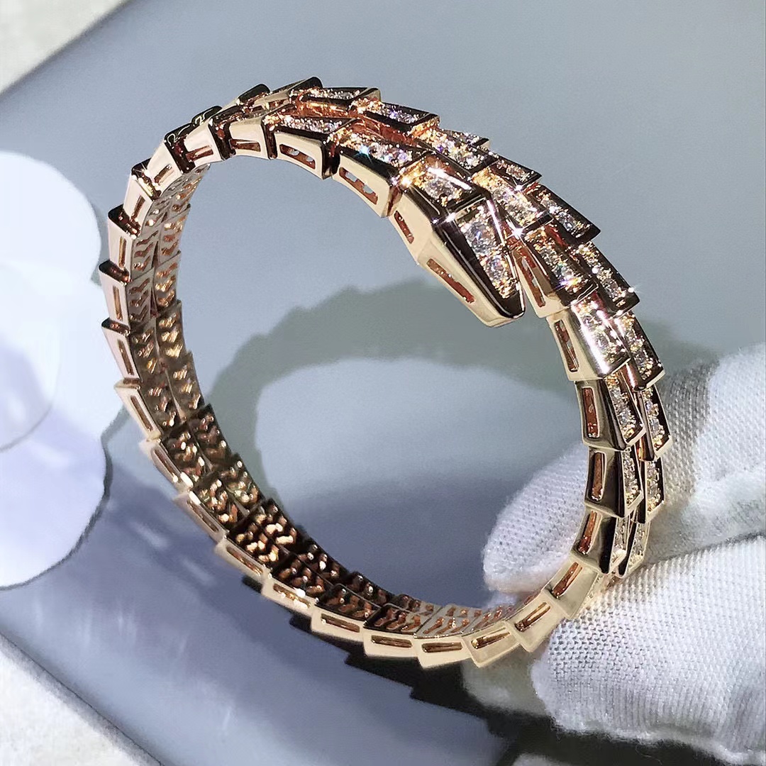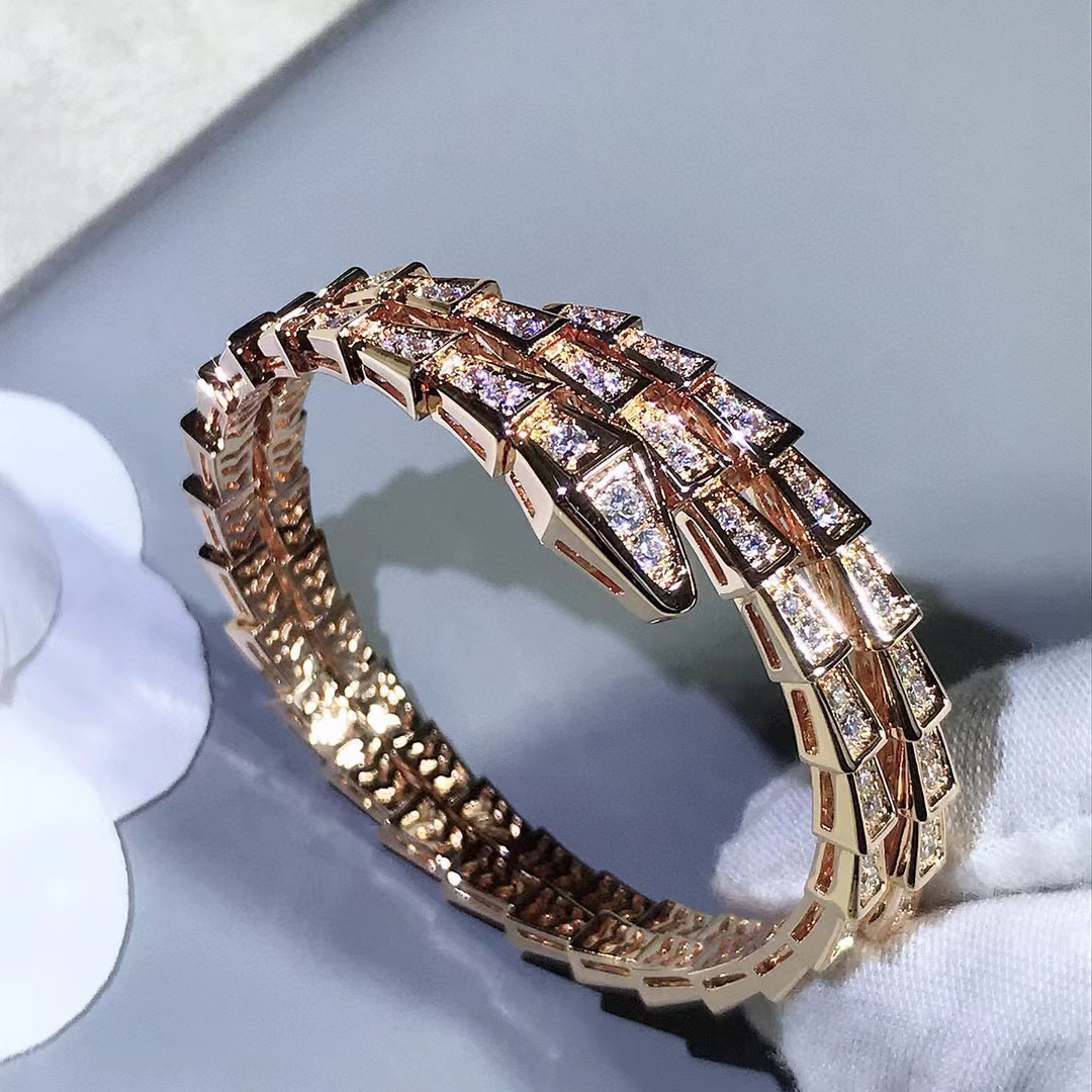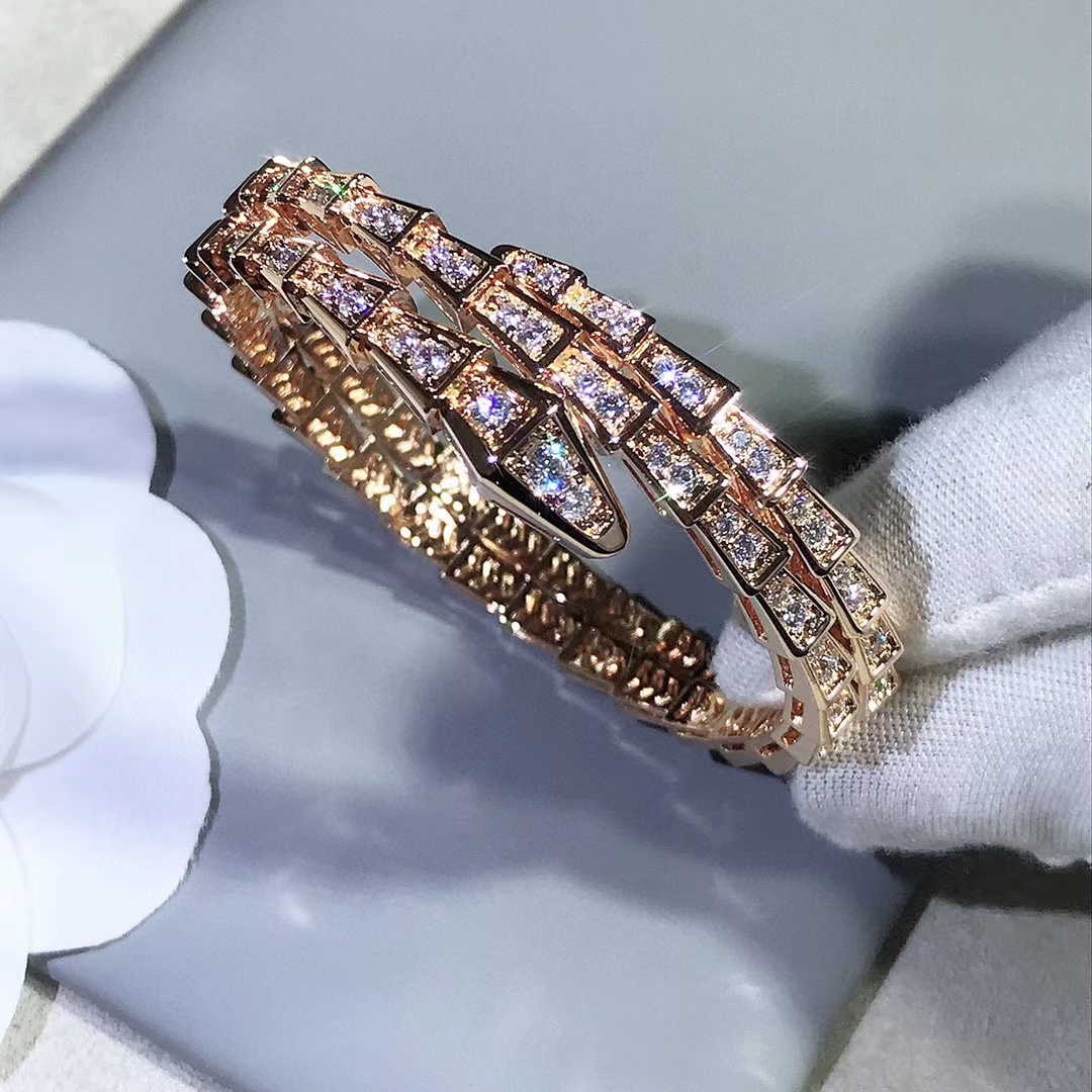 Snake shaped three-layer diamond inlaid Adjustable Bracelet