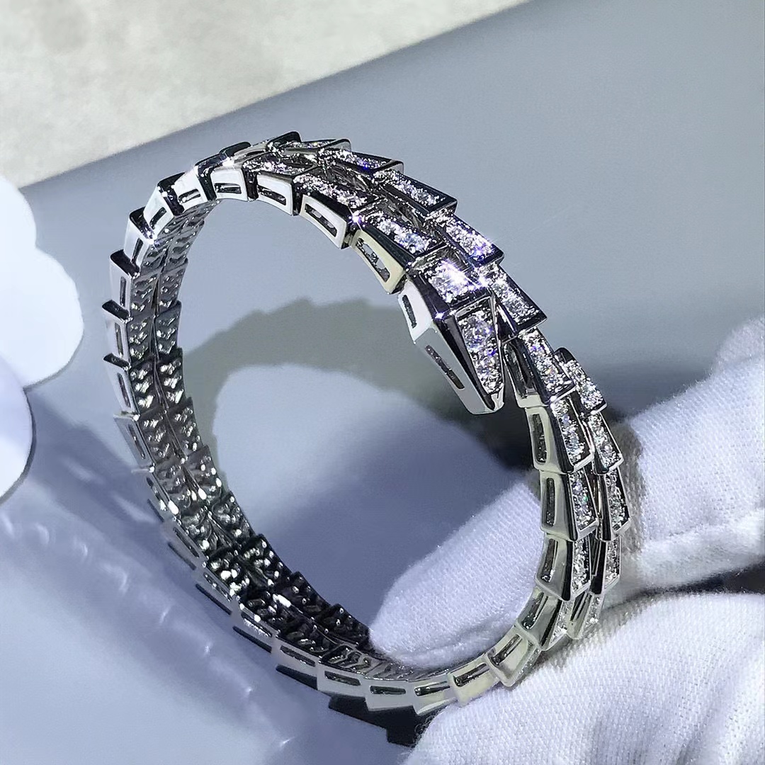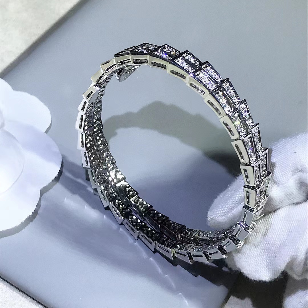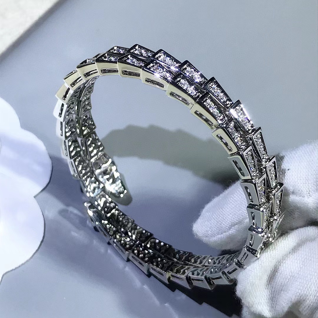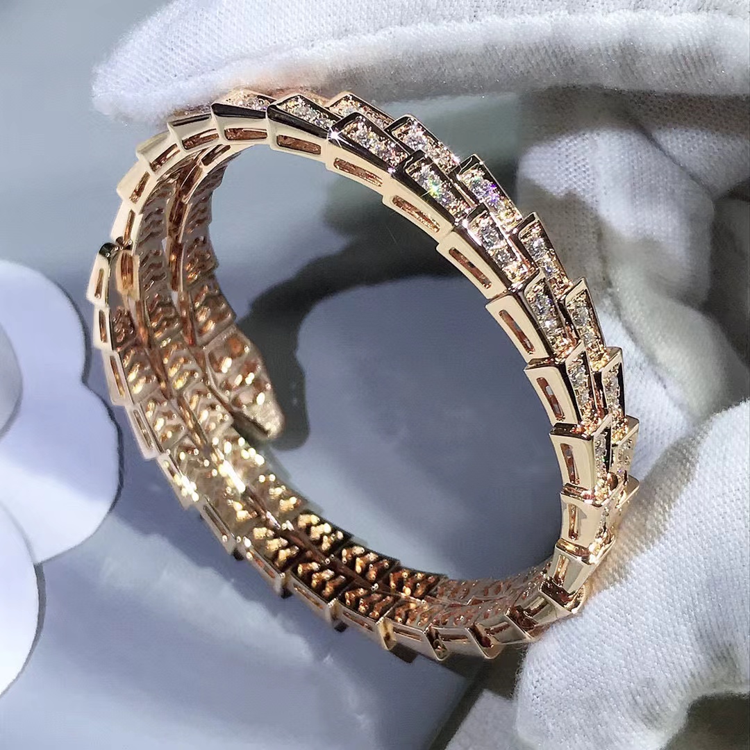Snake shaped three-layer diamond inlaid Adjustable Bracelet