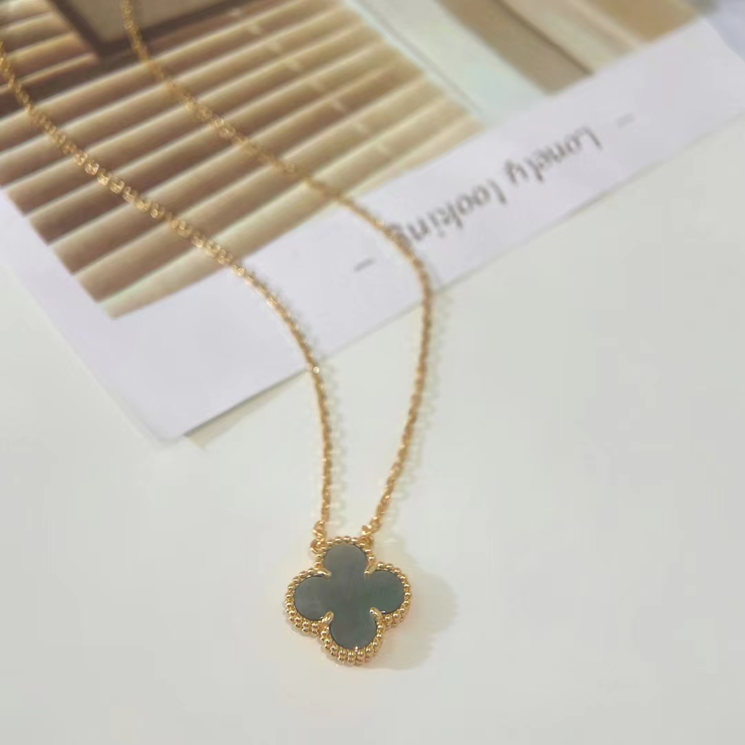 Clover necklace inlaid with diamond v-gold mate...